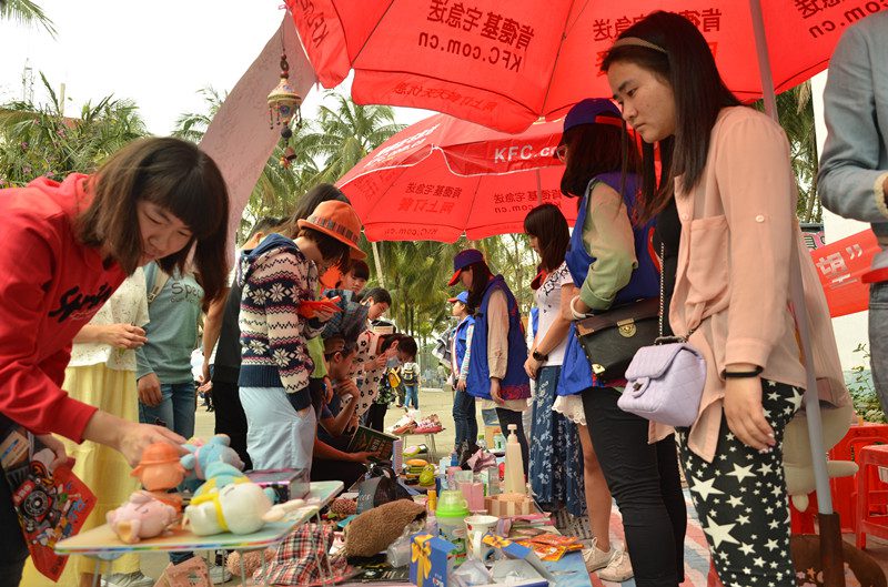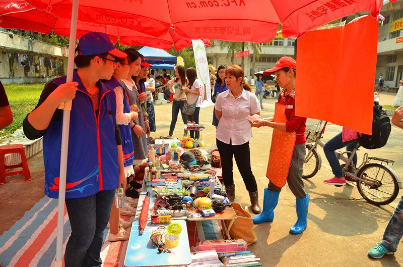 青年志愿者积极下宿舍宣传并回收旧物,3月4日下午团委社会实践部干部和青年志愿者们还在五食堂门口设据点进行了宣传和回收工作。历经了8天的宣传、回收,共筹得包括图书、衣服、鞋子、手提包、饰品、电器、生活用品等在内的物品多达上千件,在对物品一一整理估价后,义卖活动于3月8日如期开展。由于是公益义卖物品,物品定价低廉,意义非同寻常致使活动现场非常火爆。义卖活动也得到了全校学生和教职员工的一致肯定,在本次义卖活动上他们不仅选购到了满意的商品,也奉献了自己的一片爱心。本次义卖的善款将由灵犀直播