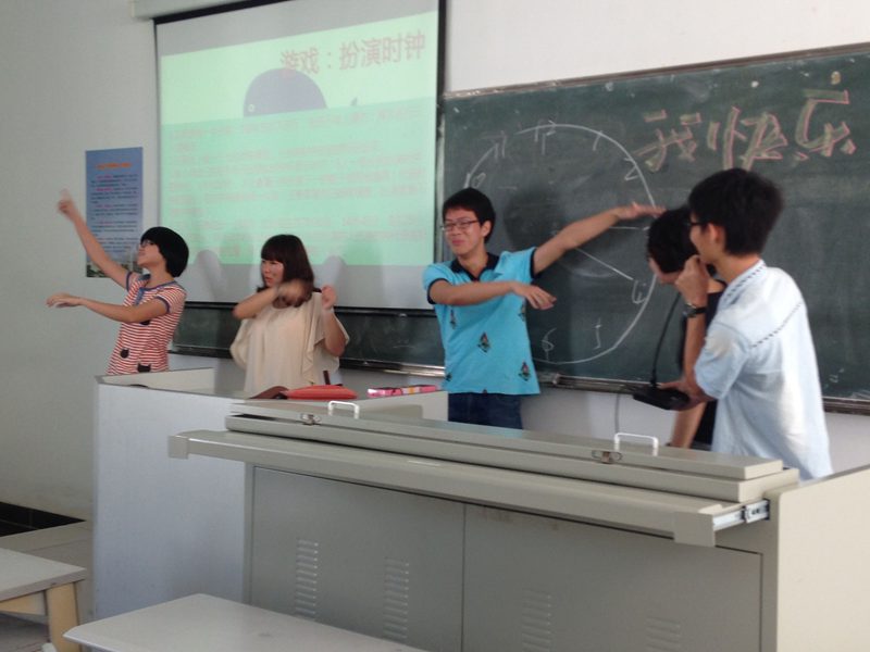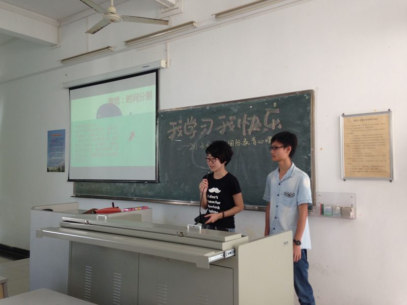 2014年3月28日上午9点45分,2013级汉语国际教育一班以“快乐学习,掌控时间”为主题的心理主题班会在三号教学楼202教室如期举行。本次班会由心理委员李润佳同学和符德炎同学共同主持,学工办王俊延老师以及班主任李小叶老师应邀参加了活动,团委办公室干事杜晗同学、学生会学习部干事吴偲同学参与并对活动进行记录评分,2013级汉语国际教育1班全体同学参与了本次活动。 活动开始时,班主任李小叶老师做简要讲话,和同学们分享了自己的学习感受和体会。由心理委员介绍了大学学习与高中的不同。随后进行了“时间分割”“正话反说”“扮演时钟”“管理时间”四个趣味游戏和活动,同学们积极参与相互讨论并上台分享学习经验,班会气氛轻松活跃。班会的最后由王俊延老师总结发言,带给同学们很大感触。 班会在欢快的氛围中落下了帷幕,本次班会的成功举办,让同学们对于大学的学习方法,如何更好的管理时间、安排生活都有所感悟,也增进了班级凝聚力,有利于班级的健康发展。 13对外1班李润佳