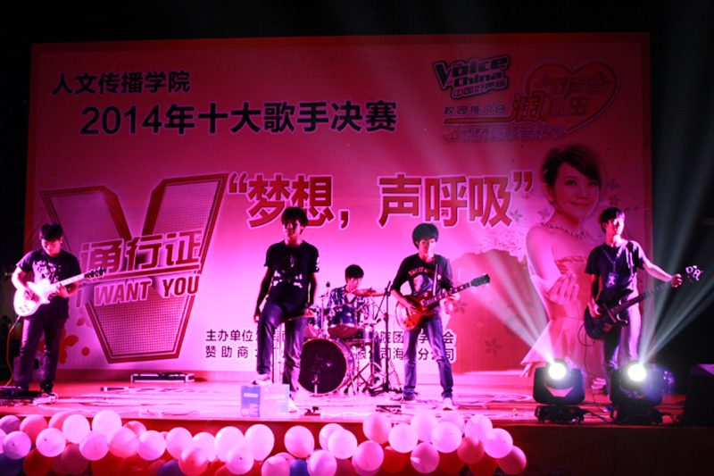 bingo 乐队的火热开场之后,四位主持人盛装亮相正式拉开了比赛的序幕,经过初赛、复赛层层选拔留下来的12位优秀选手炫丽登场。本晚的决赛分为两场进行:第一场由抽签决定出场顺序和组合方式,两名选手共同完成一首歌,评委会根据两个人的表现进行分别打分。第二轮会根据抽签顺序各位选手依次演唱,最后取两轮的成绩综合算作选手的最后得分。经过两轮的比拼,依据总成绩高低进行排名和颁奖。 得力于前期良好的宣传,本次晚会取得了很好的影响。旅院广场站满了前来观看的同学,他们热情的欢呼,积极的互动将这场热烈的比赛推向了一个又一个高潮。在第一轮的比赛中,各组选手密切的配合,完美的诠释给在场的每一位观众奉上了一场精妙绝伦的试听盛宴。在中场舞蹈助演和微博抽奖环节结束后,第二轮的比拼正式开战。由于是各自为营,所以选手们也都激发了自己所有的能量,展开了王者的巅峰对决。有劲歌热舞的活力四射,有经典歌曲的独特魅力,潮流韩曲、优美民歌、悦耳民谣一首接一首的尽情演唱将整场晚会带入了一个高潮。经过激烈角逐,最终卿月同学夺得大赛冠军,熊一颖、韦媛夺得亚军和季军,除此之外刘菁、陈新心、曹翰苑、王川远、宋歌、陈洁、陈灿也都入围十强。而李嘉欣获得最佳台风奖,吴旗获得最具潜力奖。 “梦想 声呼吸”,用歌声呼吸梦想,用梦想表达歌声。12位歌手在舞台上为梦发声,为梦拼搏也无不感染着每一位观众。在这里我们不仅要为充满梦想的声音鼓掌,更要为拼搏追梦的劲头鼓掌。我们相信更多的人文学子也正在属于自己的舞台上追逐跳跃,在自己守望梦想的年华里顽强拼搏,我们也更加的希望每一个梦都能开花,每一份追求都能成功。