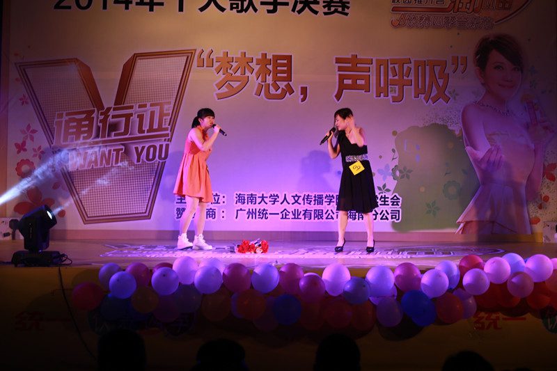 4月14日晚7:30,人文传播学院2014年“梦想 声呼吸”十大歌手决赛在旅院三教火热开赛。出席本次决赛的领导和嘉宾有人文传播学院党委孙晓媛副书记、机电工程学院团委书记崔万春老师、人文传播学院学工办公衍峰、王森森、熊文军老师;海南乳业市场销售部负责人王燕平女士、校学生会主席宋子琛、人文传播学院学生团委副书记夏国淞、学生会主席李文杰、王忠莉、康墨扬以及各兄弟学院的学生会主席和文娱部部长。 在灵犀直播