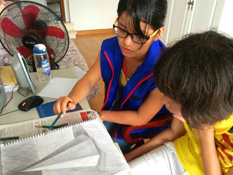 志愿者走进社区住户家中辅导学生学习