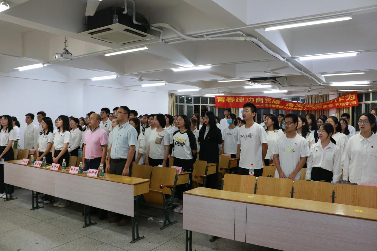 开班仪式在昂扬的国歌声中拉开序幕。随后,团委组织部干事宣读培训班管理章程。团委书记公衍峰在致辞中表示学院党委、团委高度重视青年学生的教育培养工作,尤其关注大学生骨干的成长情况,通过组织开展思想引领工程,积极引导青年学生提升思想境界,增强工作能力,提升自我修养;学院党委负责人邱华祥为本期培训班开班,担任第一讲主讲嘉宾就体现了学院党委对共青团工作、青年人才培养工作的高度重视。最后,全体学员起立,齐唱团歌。
