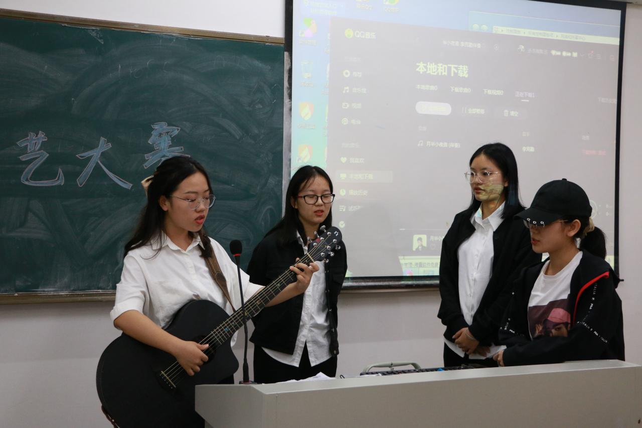 李嘉萍、肖芯妍的一曲《不为谁而作的歌》拉开大赛序幕。乐音勾勒出灵动的世界,随后《月半小夜曲》、《夏天的风》等多首歌曲依次进行,为观众带来了一场听觉盛宴。传播二班的刘肖表演自编舞蹈《渡》,引发在座观众的阵阵掌声。中场休息时,评委符明超为大家带来了吉他弹唱《至少还有你》,将现场气氛带入高潮。在点评环节当中,孙泽林同学从表情管理、音乐贴合度、基本功等方面对舞蹈节目作了点评;符明超同学则从表情动作、音准和歌曲层次感方面对选手进行了指导。