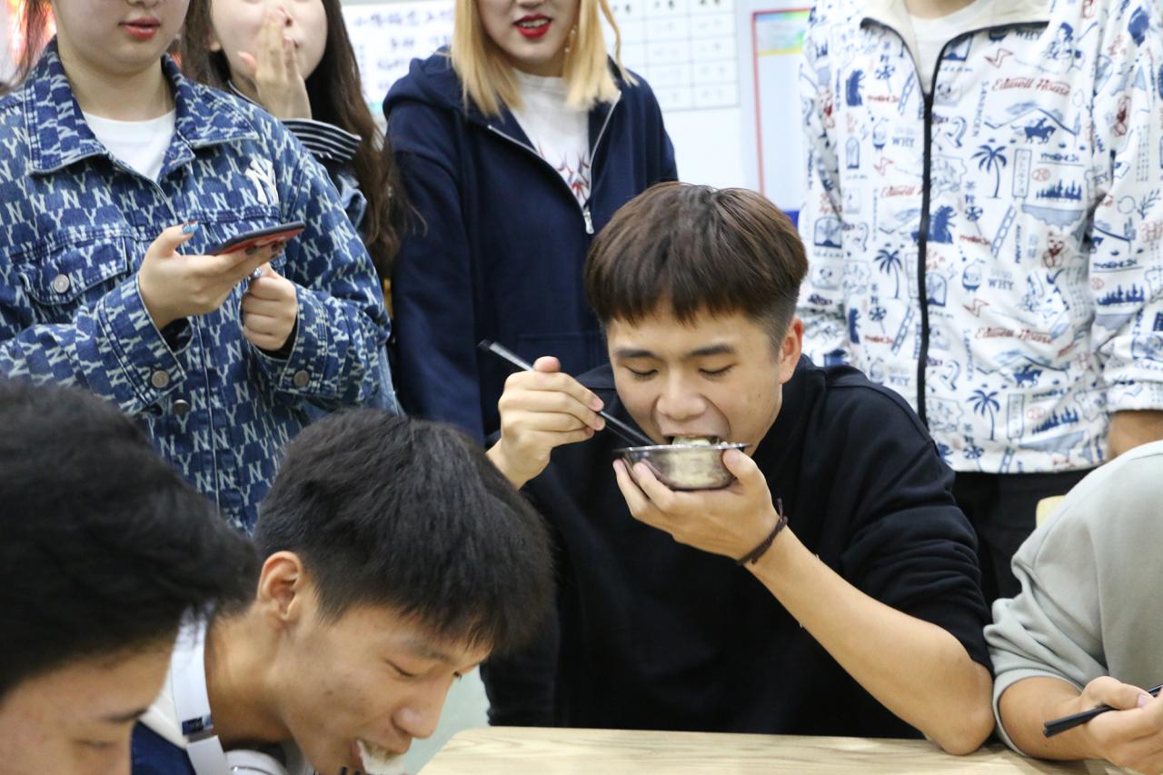 游戏结束后,饺子出锅,分发到各个小组。在吃饺子的过程中,“大胃王”、“抢板凳”和“成语接龙”游戏分别开展,现场掌声不断,气氛轻松活跃。