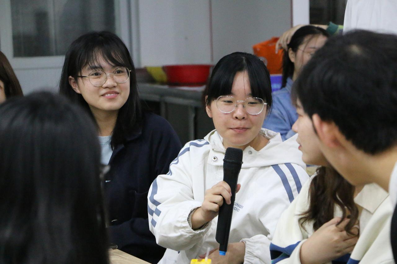 晚上19时30分,城西食堂二楼灯光明亮,凉意习习的夜晚在欢笑声中显得格外温暖。食堂内,活动主办方忙着拼桌子、拿零食、发饺皮、分肉馅,团学组织的成员们脸上写满期待。在两位主持人致开场词后,开场舞点燃现场热烈的气氛。