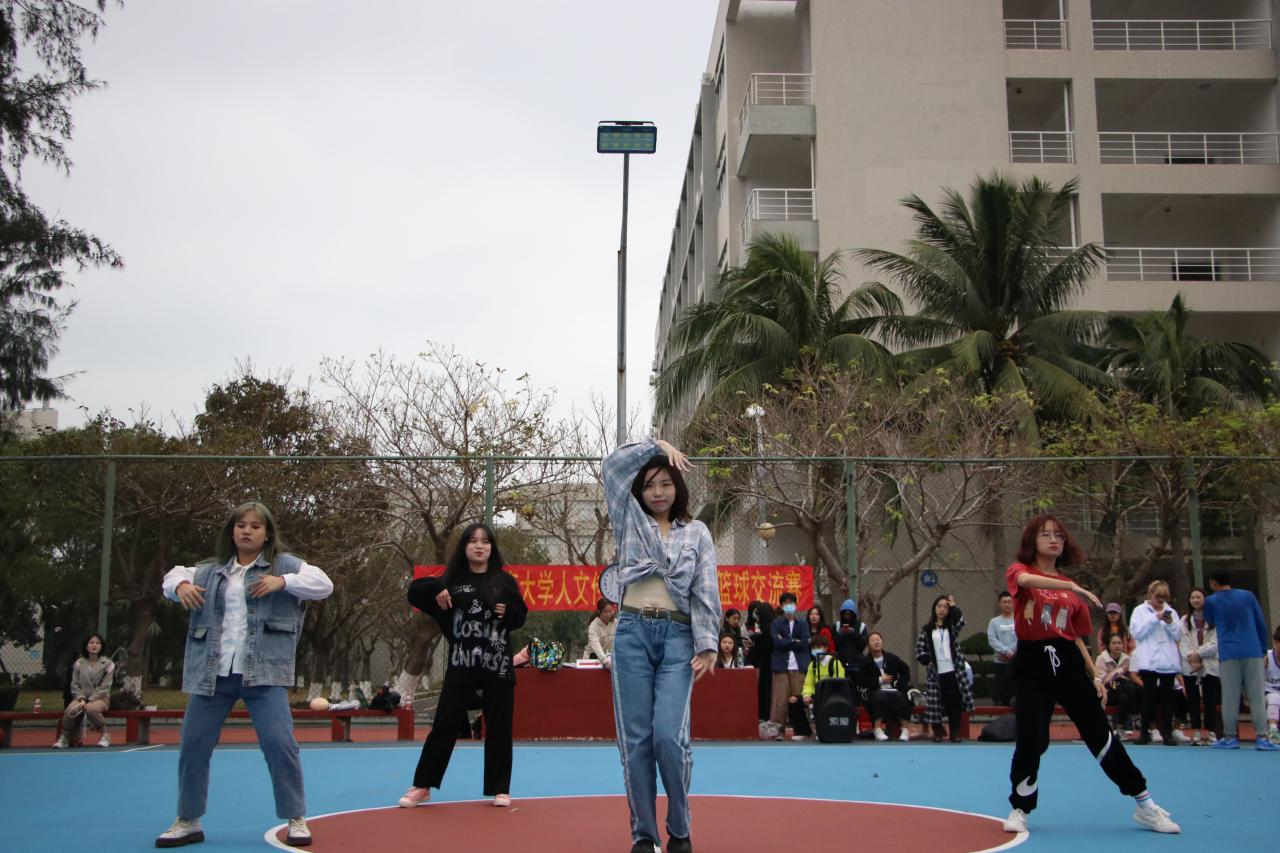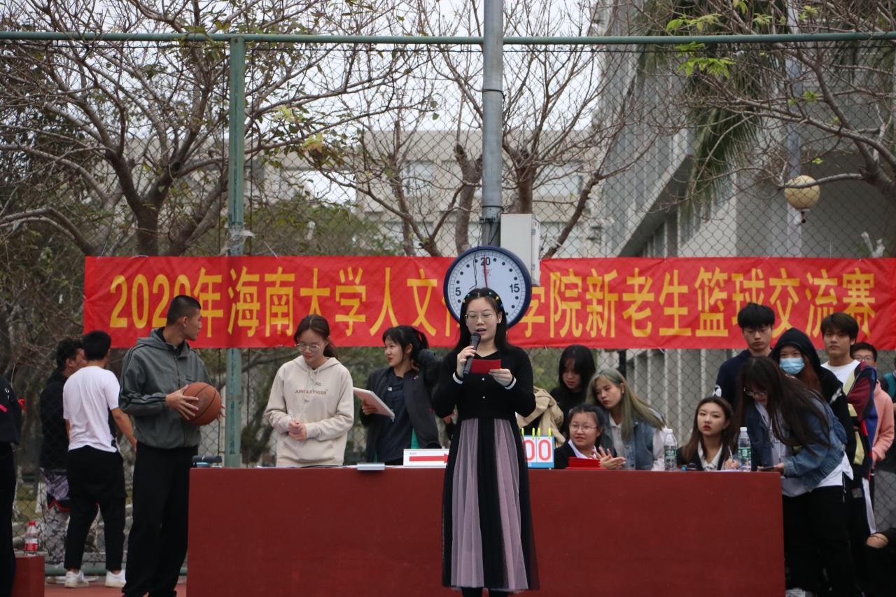 比赛随着文工团精彩的开场舞拉开序幕。随后,主持人介绍了参加本次比赛的两支队伍:文院小魔仙队和海甸人文队。双方队员进行赛前宣战,响亮而幽默的口号活跃了场上的气氛,更增添了比赛的紧张感。球场上队员们摩拳擦掌,展现了必胜的决心。