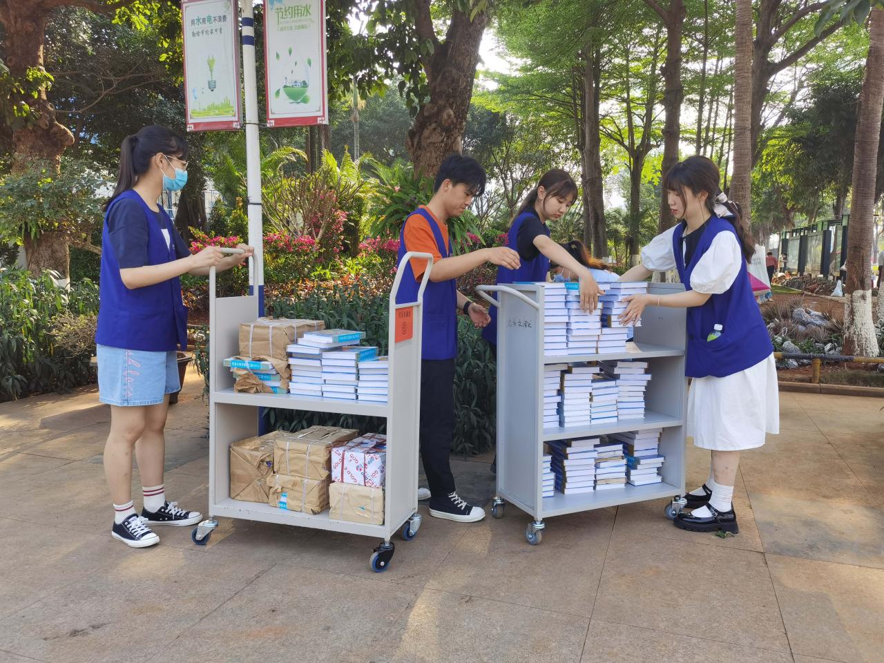 人文传播学院青年志愿者协会带队人员的带领下,十名志愿者分别从灵犀直播