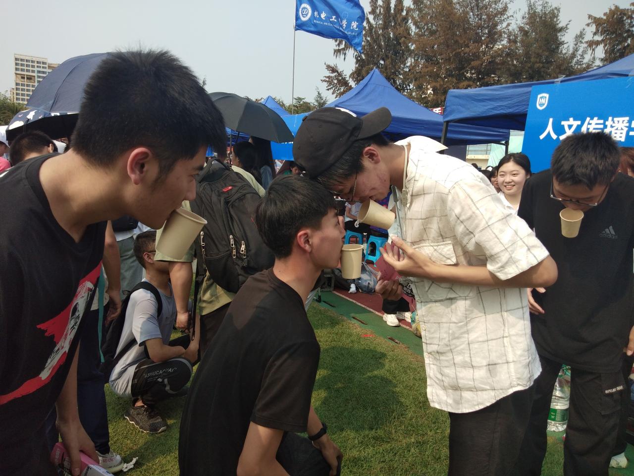 其他学院也组织了各种有趣的小游戏,如“海底捞月”、“抓鸭子”、“不倒森林”、“零零七”等,同学们在游戏中欢声笑语不断,精美的礼品更是增强了大家游戏的动力。同学们纷纷拿着小卡片在操场穿梭,打卡各个学院。