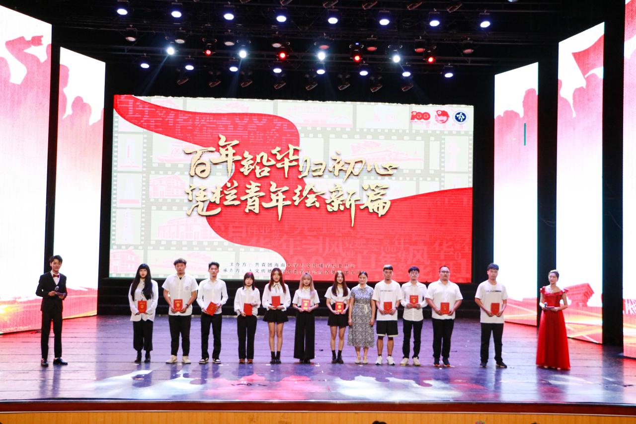 文艺学生积极分子”奖项获得者进行表彰,学院党委副书记罗邻球为他们颁奖。一场无与伦比的视听盛宴来到尾声,晚会进入了最后的节目颁奖环节,由石晓岩副院长为我们宣读并颁发了一等奖--19新传队《觉醒年代》;二等奖--20戏影队《重中之重》、20中文队《弘五四梦扬青春情》;由李彩霞副院长为我们宣读并颁发了三等奖--20新传队《烈火战马》、19中文队《国家》、19汉教队《改革又绿海南岸》以及人气奖--20戏影队《重中之重》。