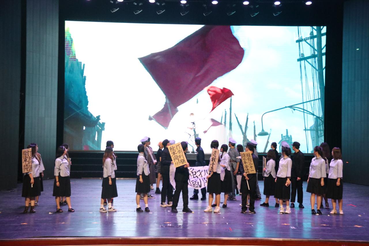 晚会进入第二篇章:木槿昔年·一叶红船载九州。五四精神,是一种担当,更是一种传承。在19新传队带来的《觉醒年代》中,我们看到了爱国情怀一代代的传递。以青年之名,呼唤觉醒年代,节目分为近代现代当代三个篇章,以音乐舞台剧的形式再现不同年代的青年面貌:备受欺凌的过去,无数奋力挣扎抗争的青年牺牲在祖国胜利的前夜;改革开放、女排、奥运等等让中国一步步走向世界中心;视角最终转向当下的我们大学生。以此铭记历史告慰先灵,更有激励当代青年之意!整个表演激昂澎湃,冲击着每一位观众的心灵。在一片掌声中,我们迎来文工团舞蹈《霍元甲》。当清朝武术大将与女性气质相遇,会擦出什么样的火花呢?三位舞者带来的表演刚中有柔,展现出了当代青年女性的刚毅勇敢以及灵活多变的气质。最后,是20戏影队带来的表演《重中之重》,在阿福与解放军共同战斗的故事里,我们体会到了“军民一家”的精神内涵。青年人面对着建功立业的人生际遇,也面对着“天将降大任于斯人也”的时代使命。第二篇章节目过后,晚会迎来第二轮表彰环节,在这一表彰环节,由学院党委书记邱华祥上台,对灵犀直播