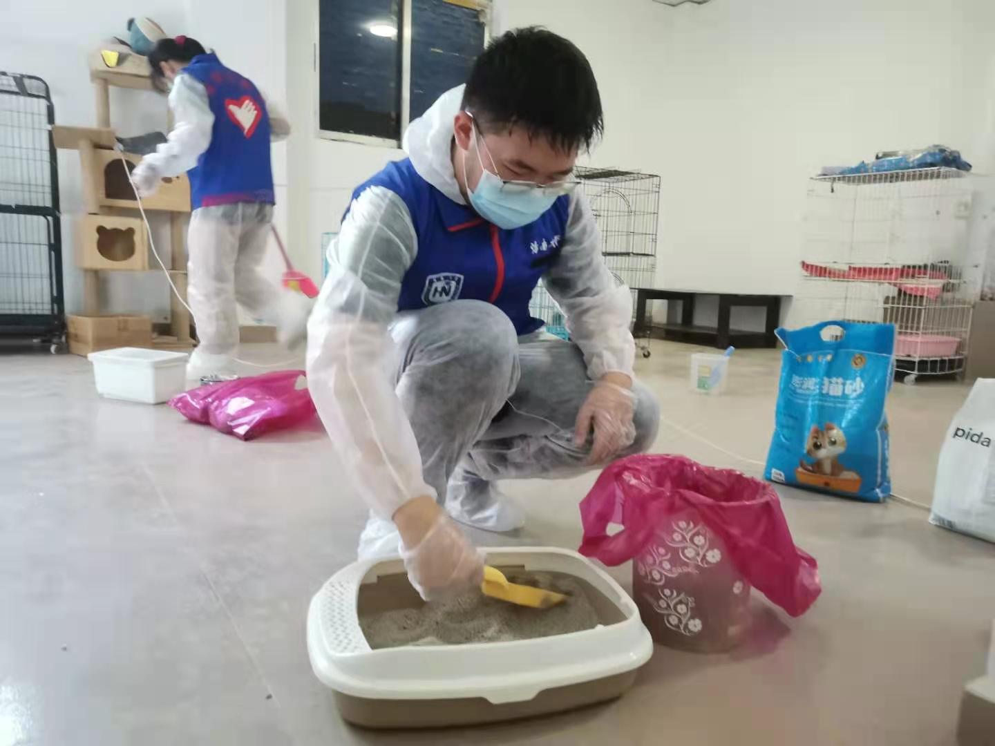 在不知不觉中,这学期和小猫们的爱心之旅即将告一段落了。到达爱心猫屋后, 志愿者们熟悉的分为三组,一组打扫猫屋,为小猫们整理出一个更加干净的生活环境,让小猫们得以健康地成长。另外两组分别为小猫们清理粪便和喂食,志愿者们熟练地用专门的小铲子为小猫们清理猫砂中的粪便,再重新倒入新的猫砂,而喂食小猫们的志愿者仔细认真的清洗小猫们的碗,并且在其中倒入猫咪们的猫粮和所需的水。志愿者之间相互配合,志愿活动进行顺利。