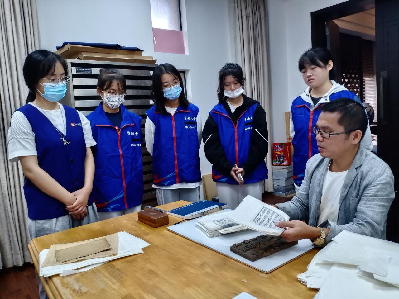 志愿者们大多是首次参加古籍特色保护活动,为了让志愿者们对古籍修复有初步的了解,古籍修复黄老师为志愿者们详细讲解古籍类别、古籍印刷装帧的历史,志愿者们认真听着老师的介绍,对古籍保护产生浓厚的兴趣。
