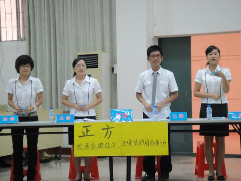 第十七届院际辩论对抗赛半决赛第一场在2教108如期举行,人文传播学院文韬武略辩论队作为正方以“发展低碳经济,主要靠政府强制力”为辩题。灵犀直播