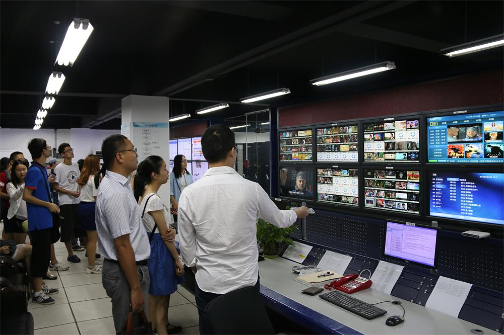 师生表示了热烈的欢迎,然后对海南广播电视总台及各个频道的发展进行详细讲解,让同学们对海南广播电视行业的发展有了初步的了解。随后在工作人员的引导下同学们参观了导播室、录音室、演播大厅以及电视台众多幕后工作者工作的地方,看到了幕后工作者的辛苦,看到了新闻背后的每个人的辛勤付出,看到了电视台的基础布局与设施。同学们在休息室看到《夜线》栏目工作人员疲惫的状态后不禁为众多幕后工作者的努力所触动。参观的时候恰逢新闻频道《整点新闻》节目直播,同学们在导播室全程观看了节目直播,对电视节目有了进一步的了解和认识。 随后在电视台工作人员的引导下,同学们去海南网络广播电视台进行参观。在海南网络广播电视台同学们参观了演播厅以及控制中心等场所,对网络广播电视有了进一步的认识,并了解了海南IPTV节目生产的流程。最终,在同学们的不舍中本次“走进企业”活动圆满落下了帷幕。 接轨社会,放眼未来。“走进企业”活动是学院为同学们今后能够更好地进行职业生涯规划、选择自己的职业而展开的一项具有十分重要意义的活动。本次活动的圆满举办,使得灵犀直播