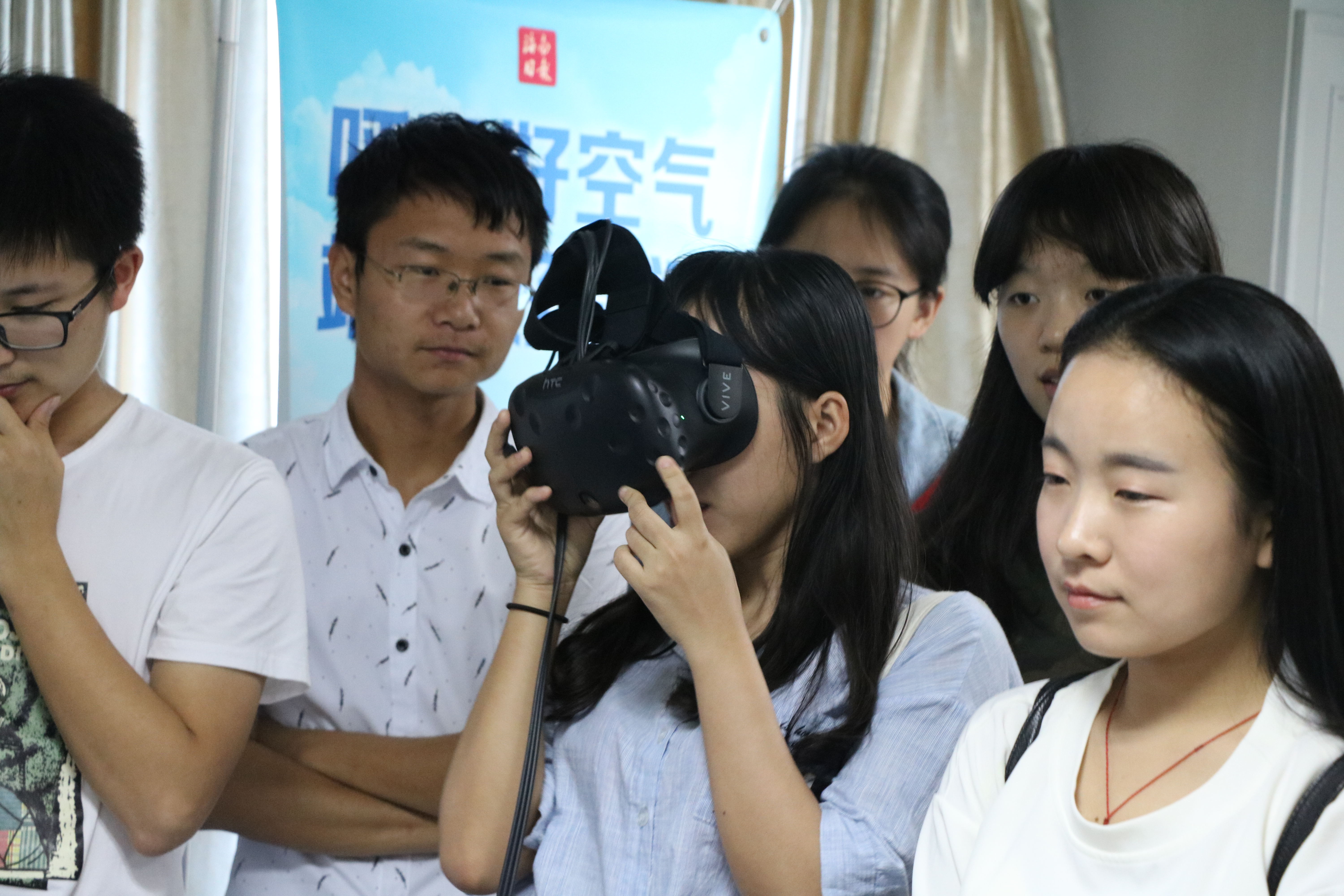 同学们体验VR新闻