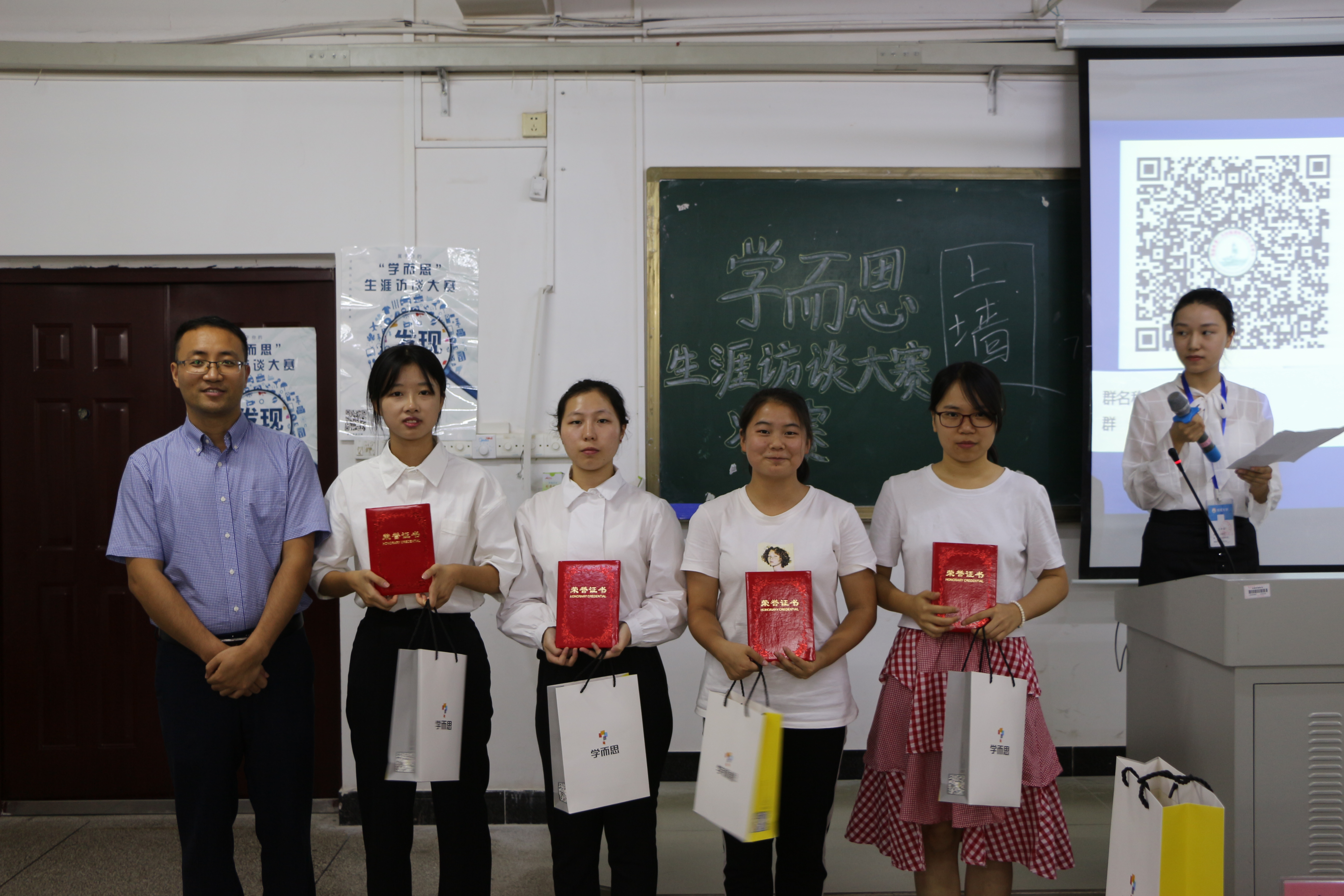 经过工作人员的紧张统分,最终决出了本次生涯访谈大赛的获奖选手,包括一等奖一名,二等奖二名,三等奖三名以及优秀奖四名。其中,于璐同学夺得桂冠,荣获本次生涯访谈大赛的第一名。随后,评委老师为获奖选手颁发证书并合影留念。最后,伴随着同学们热烈的掌声,“学而思”杯生涯访谈大赛圆满结束。