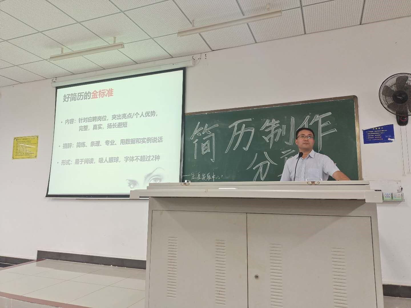 随后,分享会进入第二个环节,由公衍峰老师进行简历制作的培训。公衍峰老师由介绍简历的基本结构入手,讲解投递简历的基本要求。他由浅入深地分析了简历中的基本信息、求职意向、教育背景等板块。公衍峰老师指出,同学们应当了解自己,遵循工作经历撰写规则发掘自身与求职岗位相关的优点。简历是职场的敲门砖,好的简历更能够带给企业人力资源好的印象。