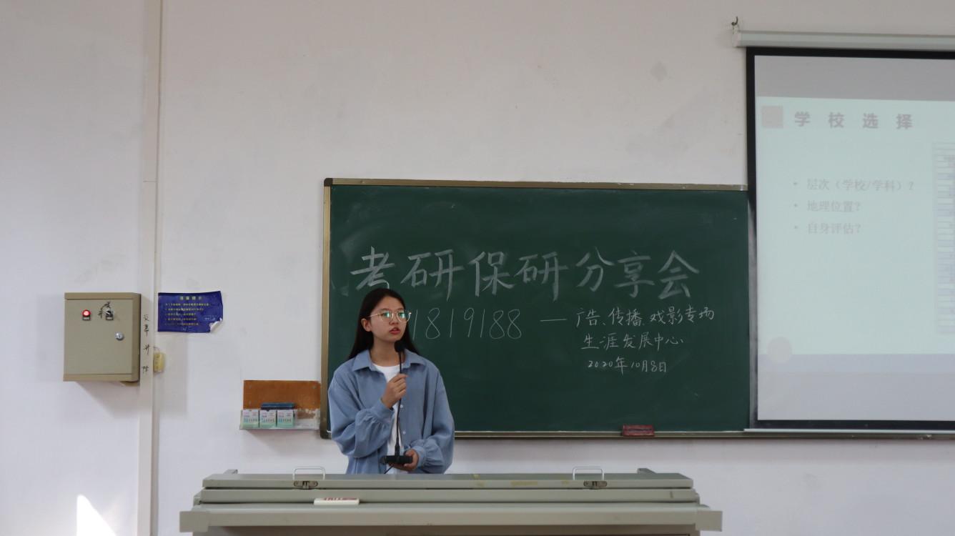 为让广大文院学子了解考研保研相关知识,2020年11月8日上午9:00,人文传播学院生涯发展中心在海甸校区2号教学楼106室及 111室组织开展了中文专场和传播戏影专场的考研保研经验分享会。本次分享会很荣幸地邀请到六位优秀的学姐来进行经验分享,2018级、2019级、2020级同学积极踊跃报名参加,学习学姐成功的经验。