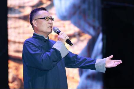 罗大明老师为观众们深情演绎诗朗诵艾青的现代诗《我爱这土地》,诗作对土地的赤诚之爱,对祖国的真挚之爱激起观众的强烈共鸣。