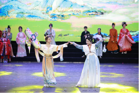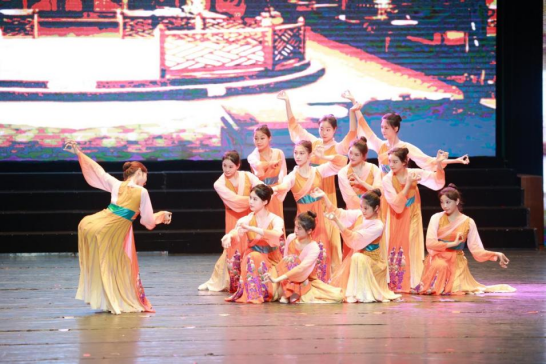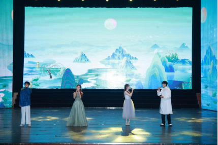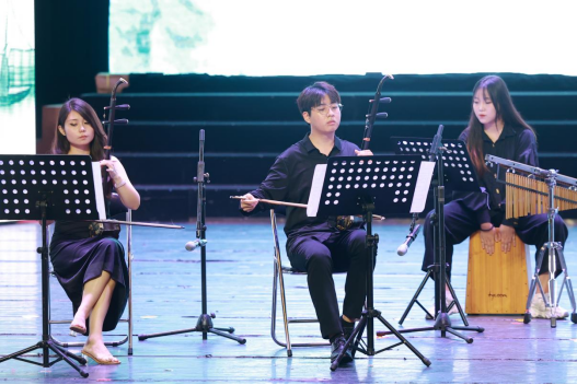 晚会以“笺香墨韵,一纸春风”为主题,分为“对檐疑燕起”“凤舞伴鸾歌”“经典咏流传”三个篇章进行。节目以诗歌为主线,通过器乐演奏、舞蹈、歌曲、朗诵等形式呈现,展现了青年学子对中华经典的传承和创新。晚会伊始,一曲传统器乐演奏《兰亭序》,将现场观众的思绪渐渐带入诗歌的境界之中。